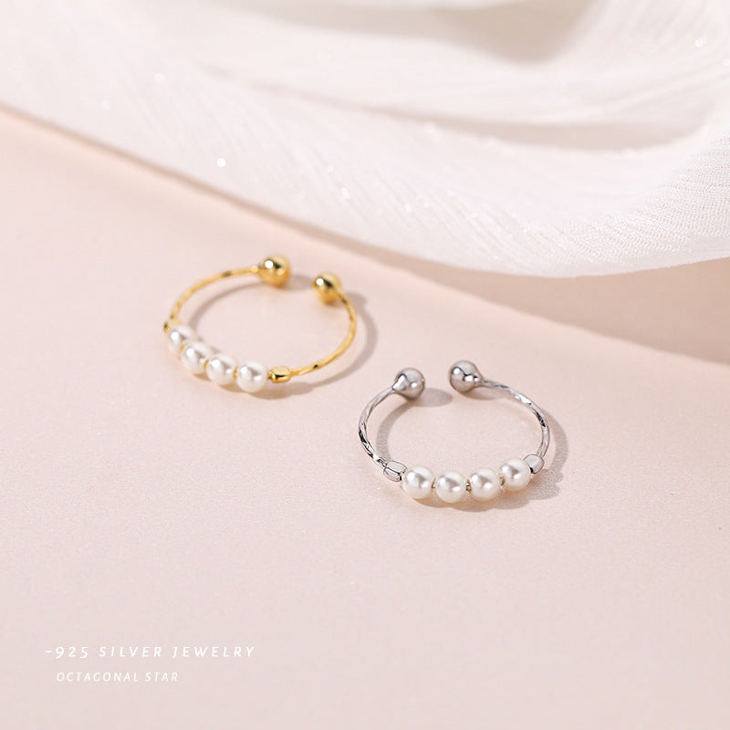 Retro imitation pearl ring women's magic decoration ring pure silver joint ring